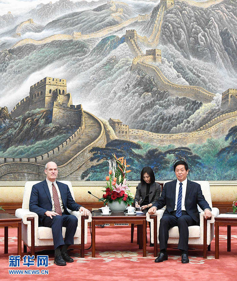 3月22日,全國人大常委會委員長栗戰書在北京人民大會堂會見美國眾議院“美中工作小組”代表團。 新華社記者申宏攝