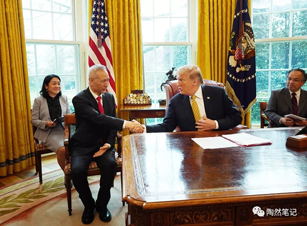 劉鶴副總理的位置,從特朗普的對面,安排到了特朗普的右側。