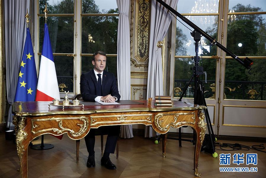 當地時間2019年4月16日,法國巴黎,法國總統馬克龍就巴黎圣母院塔樓起火事故發表電視講話,馬克龍表示要在5年內重建巴黎圣母院。當地時間15日晚18時50分許,法國著名地標巴黎圣母院塔樓起火,一小時后火情迅速蔓延,塔尖在大火中坍塌。(圖片來源:視覺中國)