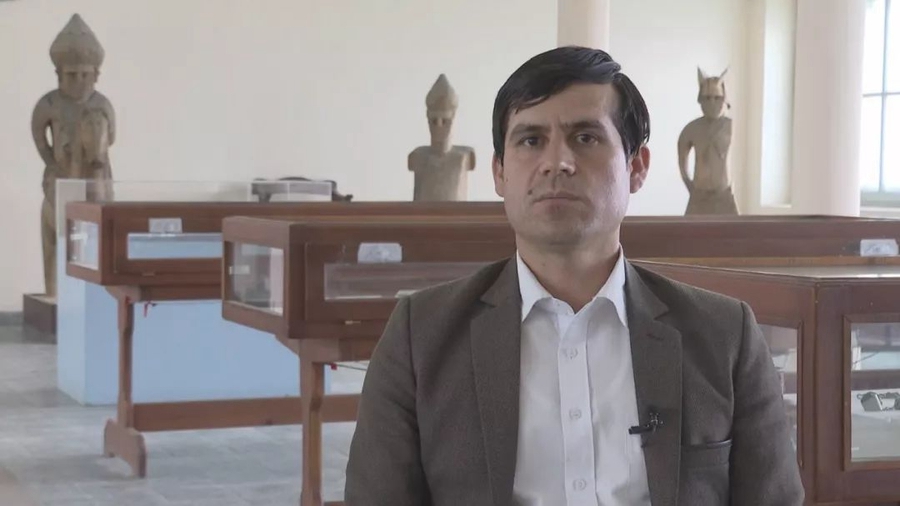 圖為阿富汗國家博物館首席策展人阿伊努丁·賽達喀特。(視頻截圖)