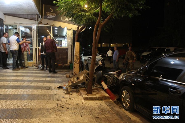 6月4日凌晨,在黎巴嫩北部城市的黎波里,人們聚集在一處遇襲現場附近。新華社發(哈立德 攝)
