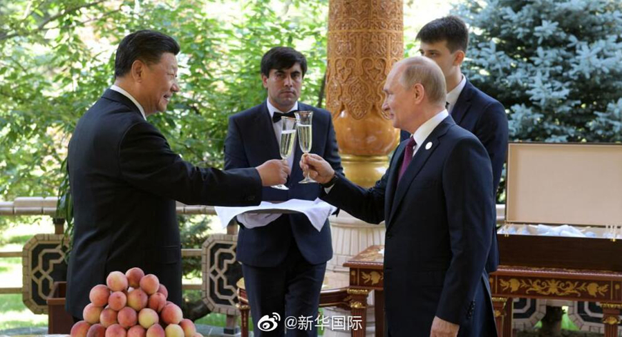 【俄羅斯總統普京當面向習近平主席祝賀生日】俄羅斯塔斯社、俄新社6月15日上午報道稱,據俄總統新聞秘書佩斯科夫介紹,俄總統普京今天上午在杜尚別出席亞信第五次峰會前親自前往中國國家主席習近平下榻賓館,當面向習主席祝賀66歲生日。普京高度評價習主席在俄中關系發展中發揮的重要作用,強調不久前習主席對俄進行國事訪問取得圓滿成功,相信俄中關系將繼續保持良好發展勢頭。習主席對普京表示感謝,指出普京在中國很受歡迎。普京總統向習主席贈送俄羅斯冰淇淋,習主席回贈中國茶葉。