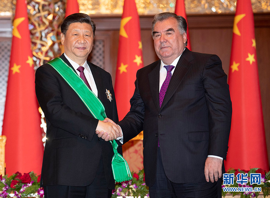 新華社杜尚別6月15日電(記者郝方甲 駱珺)國家主席習近平15日在杜尚別出席儀式,接受塔吉克斯坦總統(tǒng)拉赫蒙授予“王冠勛章”。