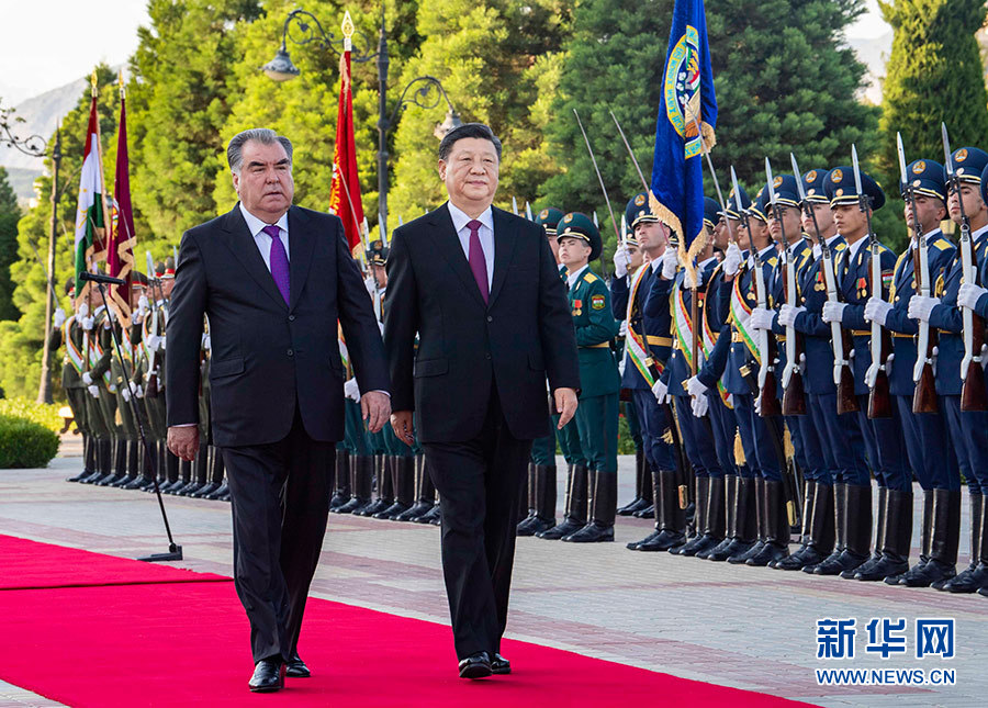 會談前,拉赫蒙在總統府前廣場為習近平舉行了盛大歡迎儀式。