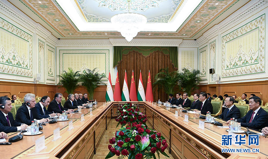 習近平首先祝賀塔吉克斯坦成功主辦亞信第五次峰會,指出峰會達成的重要共識和成果,向世界發出了積極信息,注入了正能量。中方高度評價塔吉克斯坦擔任主席國以來為推進亞信進程所做大量工作,愿繼續給予塔方大力支持,不斷提升亞信整體合作水平。