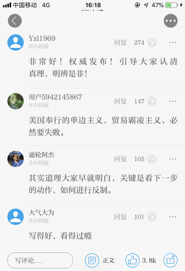 文章刊發(fā)后,網(wǎng)友紛紛轉(zhuǎn)發(fā)、點贊,表示“全面、清晰且深刻。”“權威發(fā)布!引導大家認清真理,明辨是非!”“美國奉行的單邊主義,貿(mào)易霸凌主義、必然要失敗。 ”