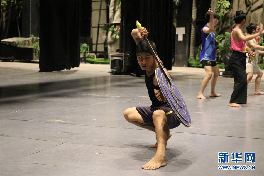 6月11日,在柬埔寨暹粒,孫塞貼農(nóng)在演出前進(jìn)行排練。新華社記者 毛鵬飛 攝