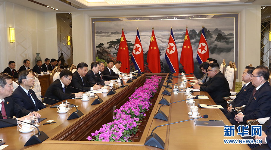 “我這次訪問朝鮮,就是為鞏固中朝傳統友誼、開辟中朝關系美好未來而來,為支持金正恩委員長領導的社會主義事業、實施新戰略路線而來,為推動半島問題政治解決進程、實現地區長治久安和發展繁榮而來。”