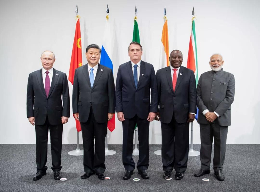 ↑金磚國(guó)家領(lǐng)導(dǎo)人會(huì)晤6月28日在大阪舉行。與會(huì)領(lǐng)導(dǎo)人圍繞金磚伙伴關(guān)系、全球治理、科技創(chuàng)新合作等深入交換意見(jiàn),凝聚共識(shí)。新華社記者李濤攝