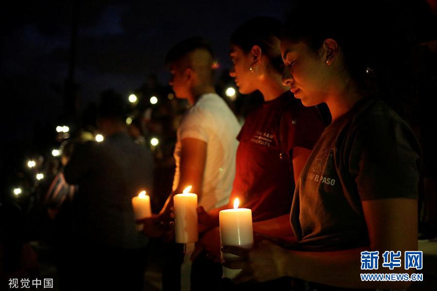 當地時間8月3日,美國得克薩斯州埃爾帕索,當地民眾參加守夜活動,悼念遇難者。當地一家超市發生嚴重槍擊案。據美國有線電視新聞網(CNN)最新消息,埃爾帕索市警察局長格雷格·艾倫稱,槍擊案已造成20人死亡,26人受傷,一名來自得克薩斯州艾倫市的21歲白人男子目前已被拘捕。(圖片來源:視覺中國)