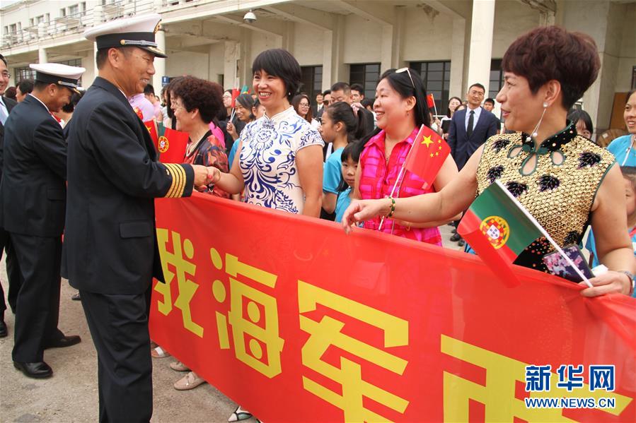 中國駐葡萄牙大使蔡潤、使館外交官以及中資機構(gòu)、華僑華人代表近200人到碼頭熱烈迎接,并參加了登艦參觀活動。