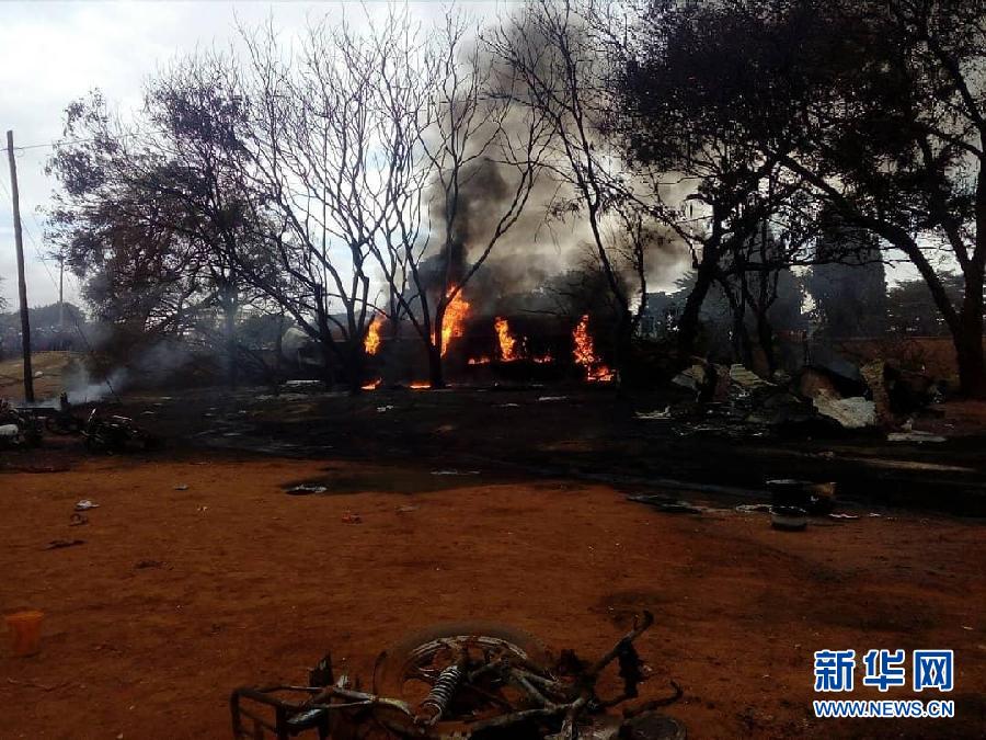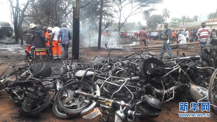 這是8月10日在坦桑尼亞莫羅戈羅省拍攝的油罐車爆炸現(xiàn)場。新華社發(fā)