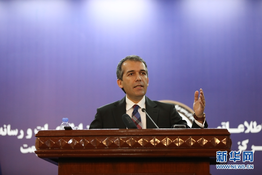 9月8日,在阿富汗喀布爾,阿富汗總統府發言人西迪克·西迪基在新聞發布會上講話。新華社發(拉赫明 攝)