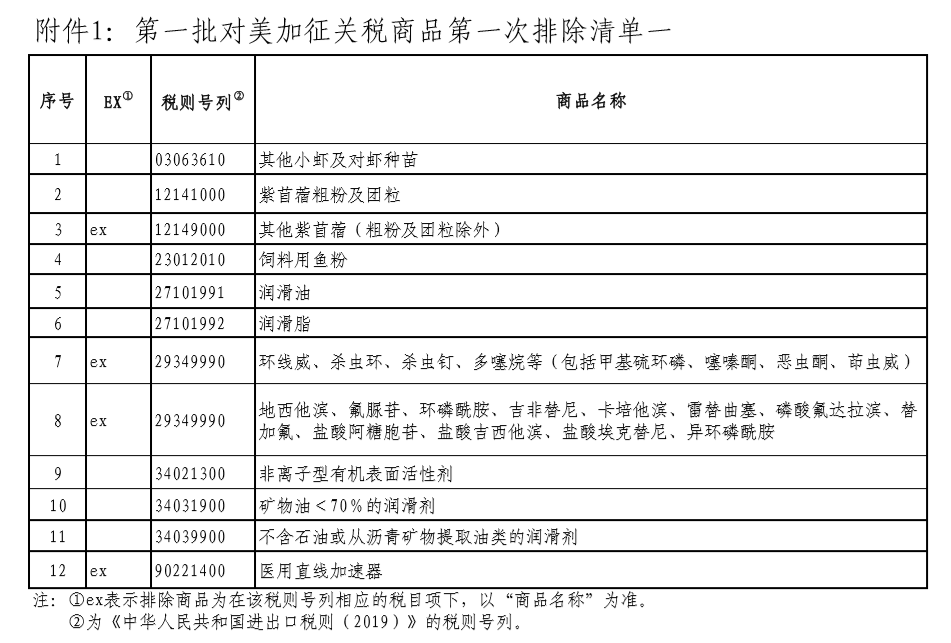 其中,清單一所列商品,自2019年9月17日至2020年9月16日,不再加征我為反制美301措施所加征的關稅。對已加征的關稅稅款予以退還,相關進口企業應自排除清單公布之日起6個月內按規定向海關申請辦理。
