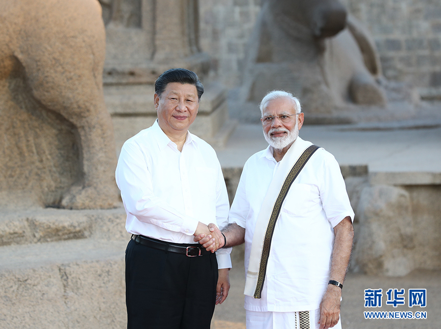 馬哈巴利普拉姆古寺廟建于公元7至8世紀,由阿周那石雕、五戰車神廟、海岸神廟等古跡組成。莫迪陪同習近平一一參觀并親自做講解。兩國領導人邊走邊談,深入交流,共話文明對話互鑒。
