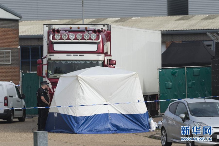 英國警方10月23日在英格蘭東南部埃塞克斯郡一工業園區內的一輛集裝箱貨車里發現39具遺體。警方說,這輛貨車在保加利亞注冊,19日經由威爾士海港城市霍利黑德入境英國,集裝箱則來自比利時。越南公安部部長蘇林10月30日說,越南公安部已準備好派出工作組前往英國,與英國警方協作核實貨車慘案遇難者身份。