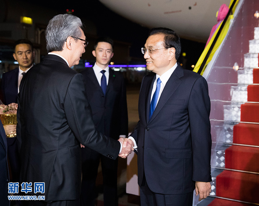 當(dāng)?shù)貢r間11月2日晚,應(yīng)泰王國總理巴育邀請,國務(wù)院總理李克強乘專機抵達曼谷素萬那普機場,將出席第22次中國-東盟(10+1)領(lǐng)導(dǎo)人會議、第22次東盟與中日韓(10+3)領(lǐng)導(dǎo)人會議和第14屆東亞峰會(EAS),并對泰國進行正式訪問。泰國副總理頌奇率政府高級官員到機場迎接。 新華社記者 黃敬文 攝