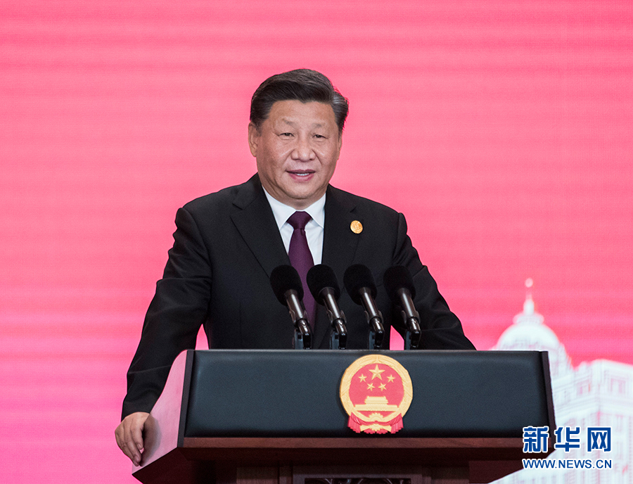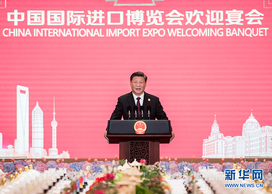 11月4日晚,國家主席習(xí)近平和夫人彭麗媛在上海和平飯店舉行宴會(huì),歡迎出席第二屆中國國際進(jìn)口博覽會(huì)的各國貴賓。這是習(xí)近平發(fā)表致辭。 新華社記者 王曄 攝