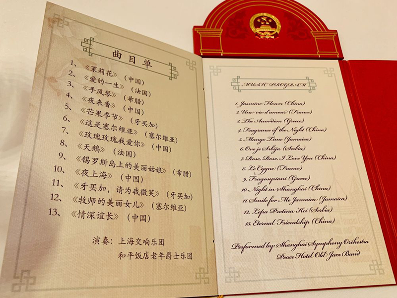 晚宴上,來自上海交響樂團、和平飯店老年爵士樂團的樂手們,演奏了中國、法國、希臘、牙買加、塞爾維亞的13首名曲,讓各國客人賓至如歸。