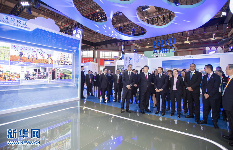 新華社上海11月5日電(記者李忠發、周蕊)國家主席習近平5日在上海出席第二屆中國國際進口博覽會開幕式后,同與會外國領導人共同巡館。