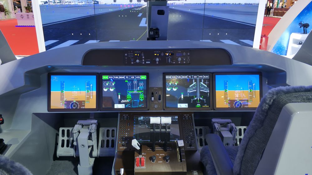 而在中國館參觀時,馬克龍總統則興致勃勃地坐進了中國商飛大型客機模擬駕駛艙。