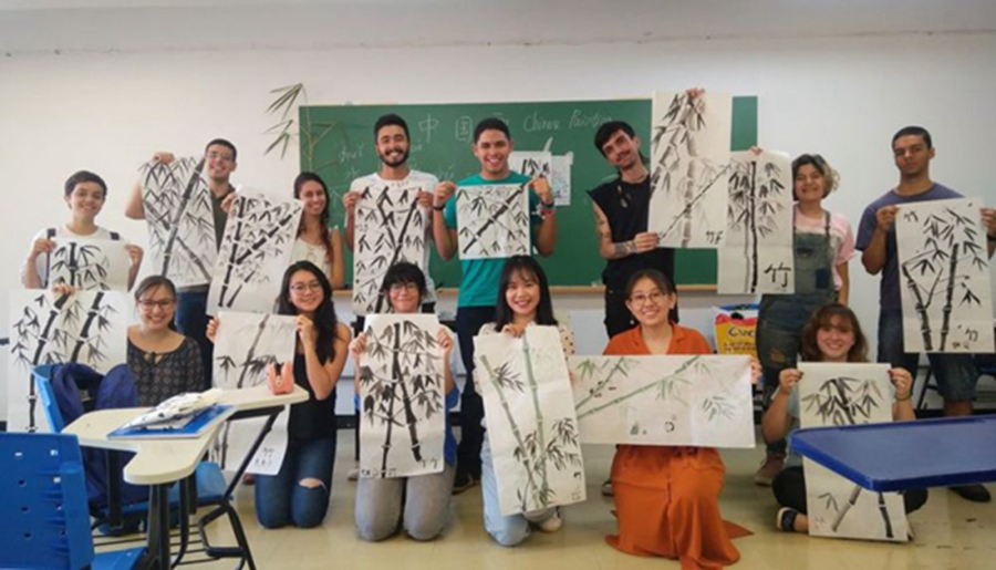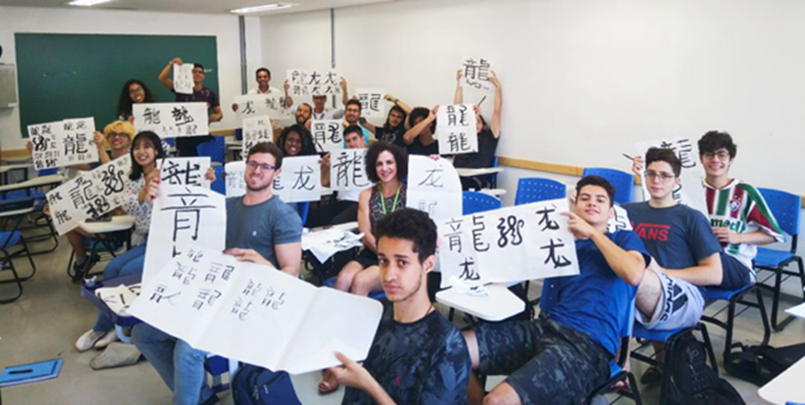 巴西學生在孔子學院體驗中國文化。巴西有10所孔子學院,是擁有孔子學院數量最多的拉美國家。