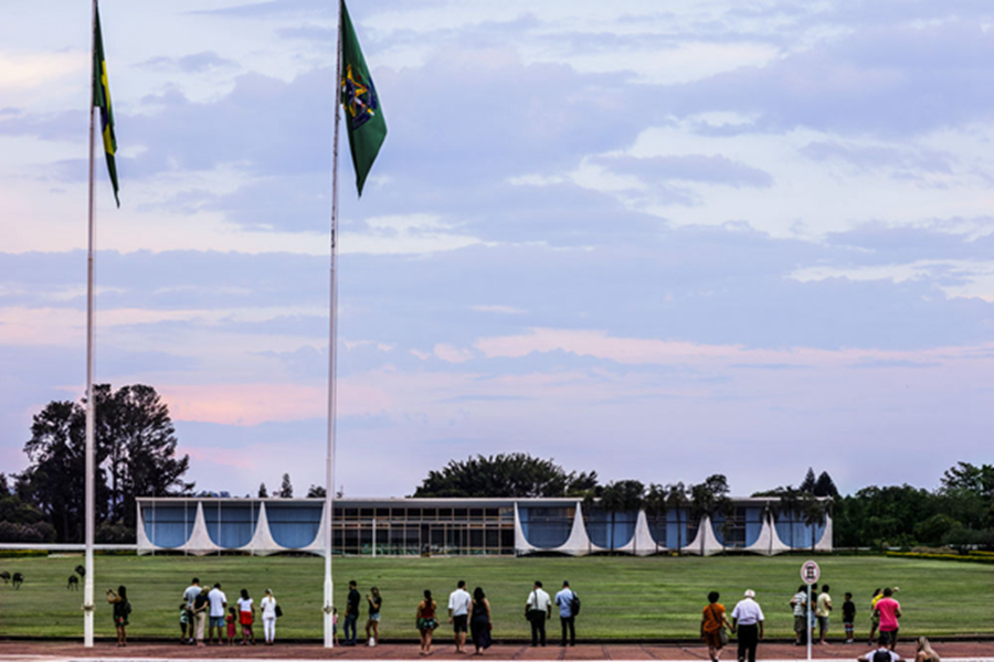 這是2019年11月2日拍攝的游客在巴西利亞總統官邸外參觀。新華社記者蘭紅光攝