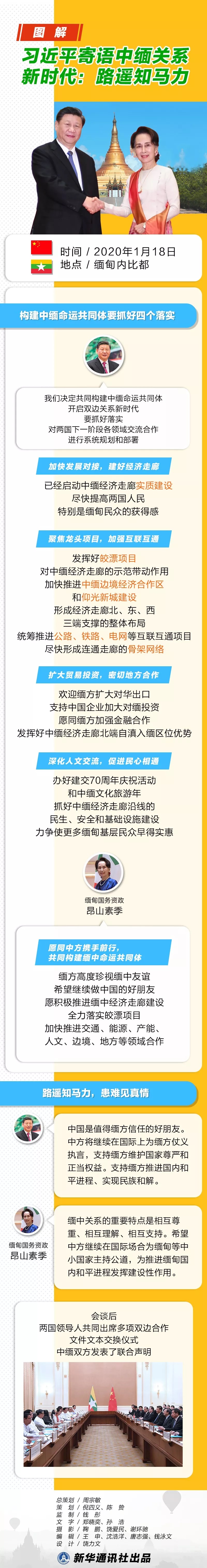 1月18日上午,國家主席習近平在內比都同緬甸國務資政昂山素季舉行正式會談。雙方決定共同構建中緬命運共同體,開啟雙邊關系新時代。習近平在會談中強調,路遙知馬力,患難見真情。