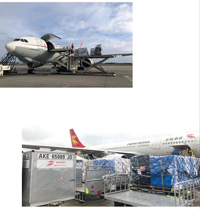 特別值得一提的是海航集團的譚向東副董事長、高建副總裁,為了協助我們把捐贈物資盡快運回國內,高度重視,靠前指揮,第一時間給予全面而具體的支持。旗下的首都航空公司市場部副總顧凌毅、貨運中心高級經理田國偉協調陳肖藝、倪福元、李小戈、首航西安基地總監周瑞喜、海航速運境外管理部副總經理池夢瑩以及郭宇萍等一批業務骨干加班加點,克服了時間緊張,物資量大,境外時差等諸多困難,創造了許多個“首航第一次”。蟠龍國際集團、中遠海運航空公司則為這場“空中接力”提供了高端快捷的航空物流平臺。而在第四批物資回運過程中,更是得到了溫州市防疫指揮部的鼎力相助,幫助我們把西班牙巴塞羅那收集點上的捐贈物資,從布魯塞爾轉道回國。