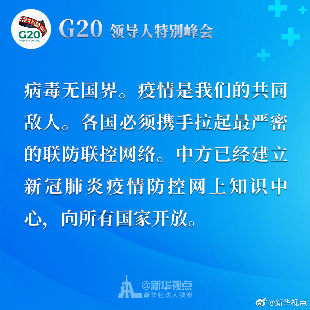 習近平在二十國集團領導人應對新冠肺炎特別峰會上重要講話金句