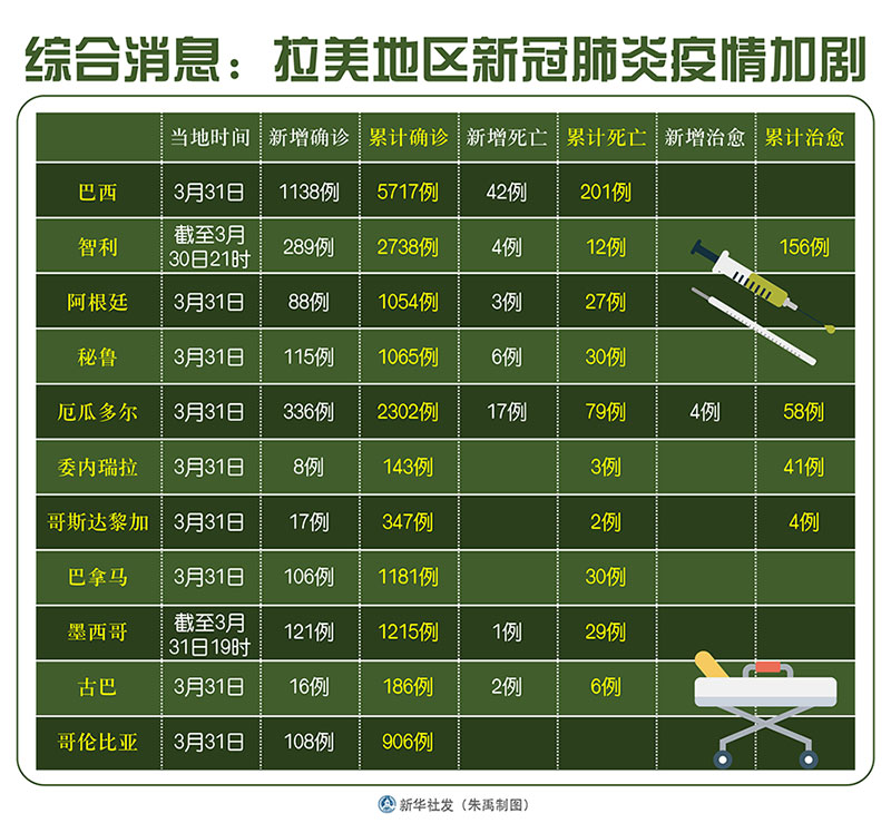 新華社墨西哥城3月31日電 綜合新華社駐拉美地區記者報道:拉美地區多國新冠肺炎疫情持續加劇,各國繼續加強防控。