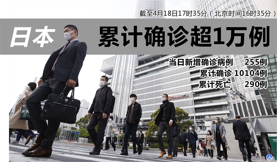 新華社東京4月18日電(記者華義)據日本廣播協會(NHK)電視臺的統計,截至18日17時35分(北京時間16時35分),日本當日新增確診病例255例,累計確診10104例;累計死亡290例。