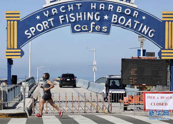 這是7月4日在美國(guó)洛杉磯縣拍攝的關(guān)閉的圣莫尼卡海灘。新華社發(fā)