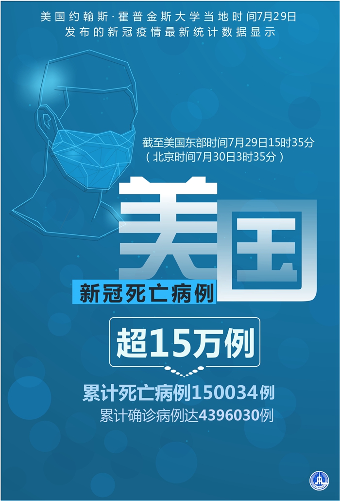 新華社紐約7月29日電 美國約翰斯·霍普金斯大學29日發(fā)布的新冠疫情最新統(tǒng)計數(shù)據(jù)顯示,美國累計死亡病例超過15萬例。