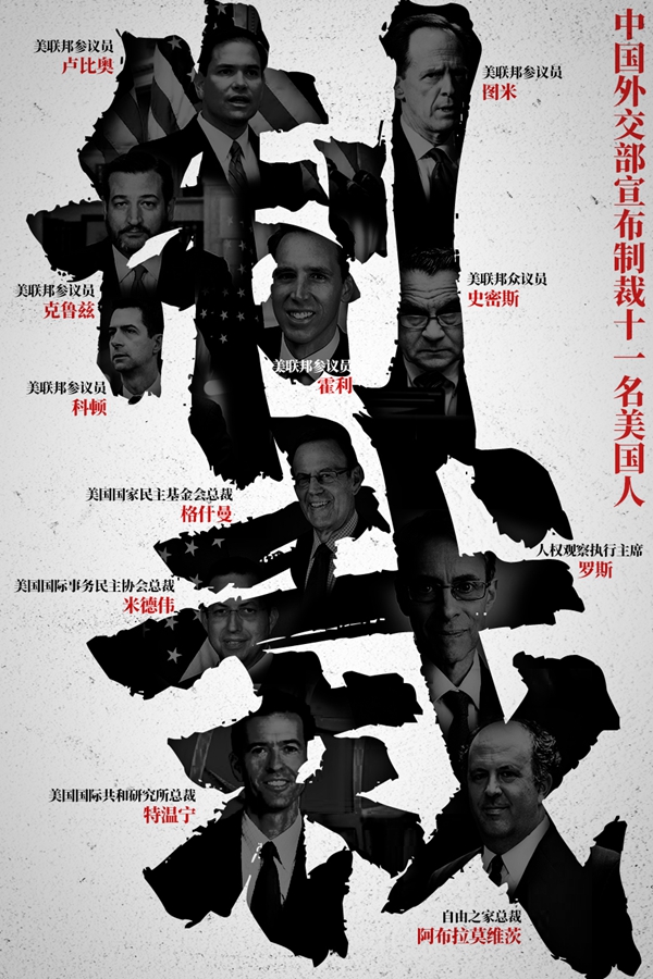 趙立堅說,針對美方錯誤行徑,中方決定即日起對在涉港問題上表現惡劣的美聯邦參議員盧比奧、克魯茲、霍利、科頓、圖米,聯邦眾議員史密斯,以及美國國家民主基金會總裁格什曼、美國國際事務民主協會總裁米德偉、美國國際共和研究所總裁特溫寧、“人權觀察”執行主席羅斯、“自由之家”總裁阿布拉莫維茨實施制裁。