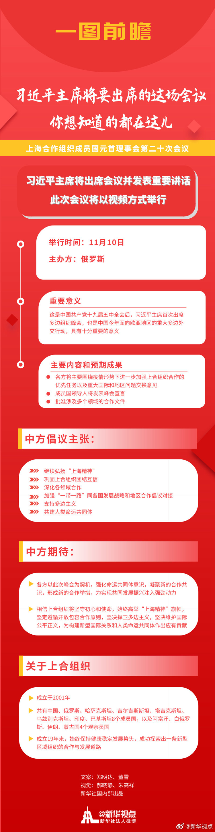 國家主席習近平將于11月10日在北京出席上海合作組織成員國元首理事會第二十次會議并發表重要講話。此次會議將以視頻方式舉行。習近平主席出席此次會議有何重要意義?請看下圖↓ ????