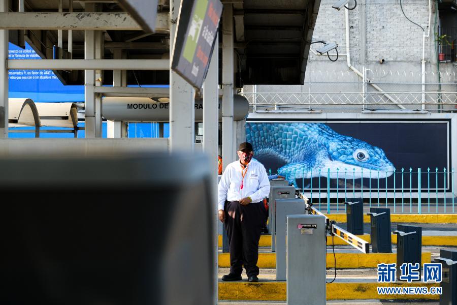 11月14日,在墨西哥首都墨西哥城,一名男子戴口罩工作。