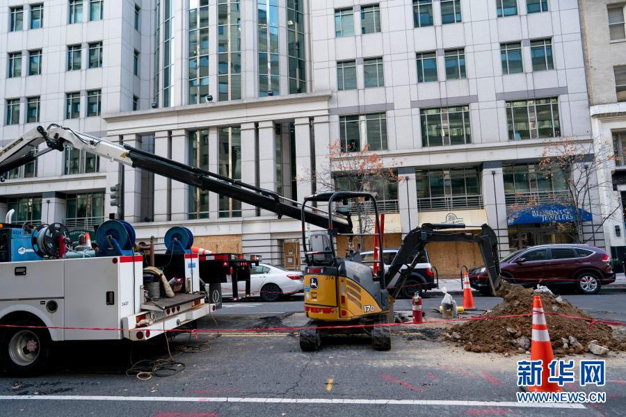 這是11月19日在美國(guó)華盛頓拍攝的一處正在施工的道路。新華社記者 劉杰 攝