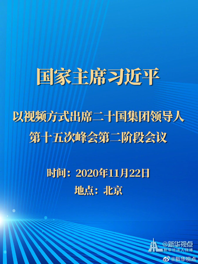 國家主席習近平11月22日晚在北京以視頻方式出席二十國集團領(lǐng)導人第十五次峰會第二階段會議。 ???