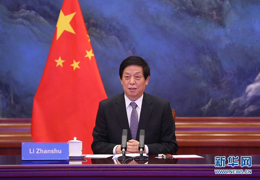 11月23日,全國人大常委會委員長栗戰(zhàn)書在北京以視頻方式同老撾國會主席巴妮舉行會談。新華社記者 姚大偉 攝