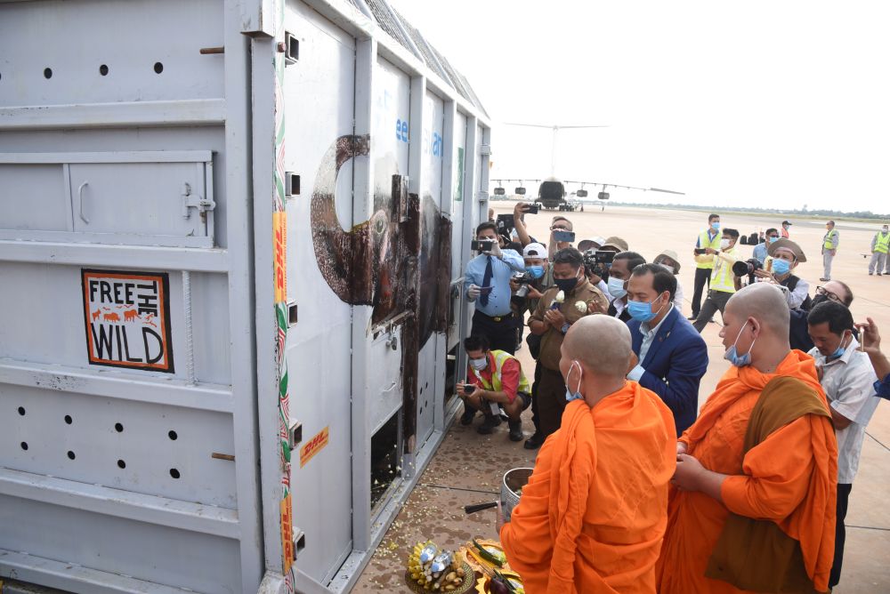 經(jīng)歷7小時(shí)飛行后,“卡萬(wàn)”抵達(dá)柬埔寨東北部城市暹粒。然后它將經(jīng)歷數(shù)小時(shí)卡車運(yùn)輸?shù)诌_(dá)保護(hù)區(qū)——那里有80多頭象。