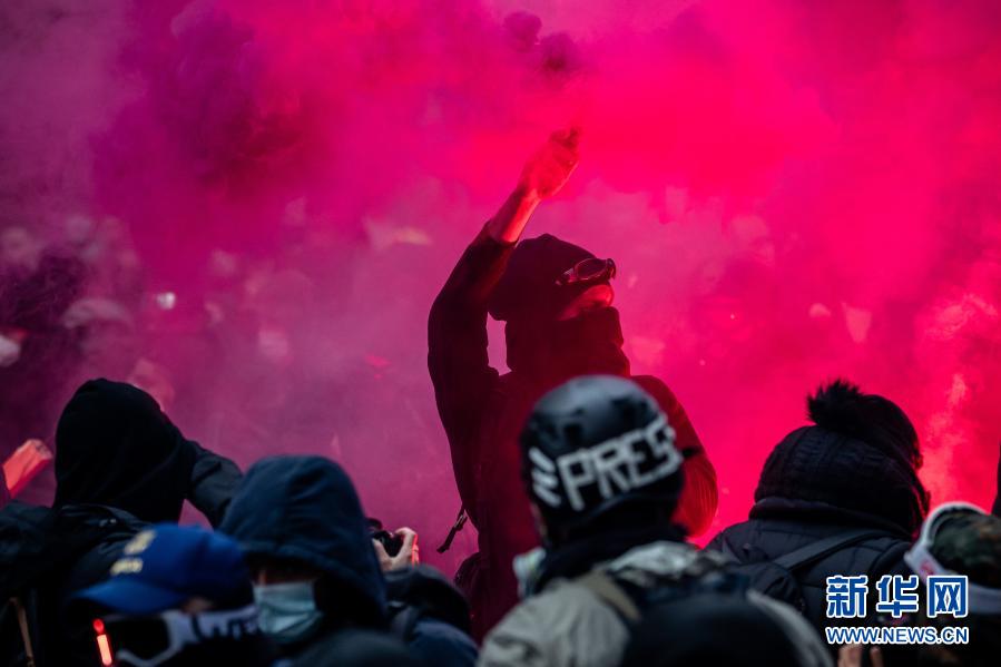 12月5日,人們在法國巴黎參加游行示威活動。新華社發(奧雷利安·莫里薩爾攝)