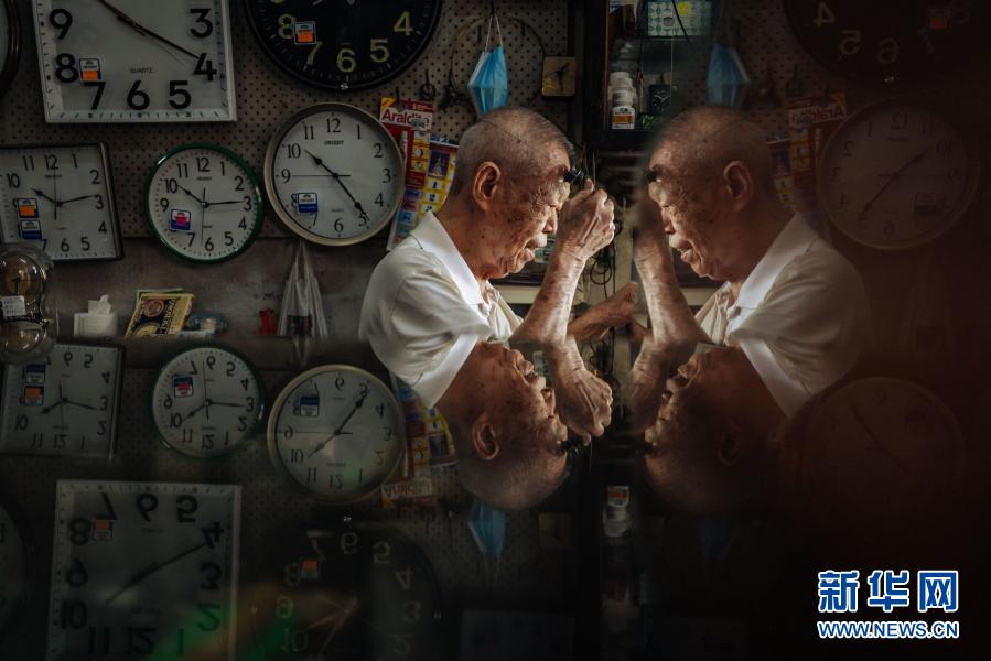 12月5日,在馬來西亞雪蘭莪州巴生的郁昌表行,韋華在維修手表。新華社記者 朱煒 攝
