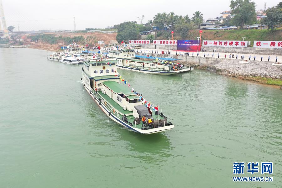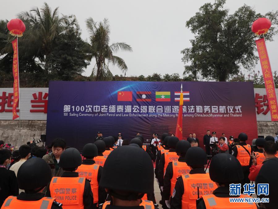 這是第100次中老緬泰湄公河聯合巡邏執法勤務啟航儀式現場(12月8日攝)。新華社發(云南省公安廳水上巡邏總隊提供)