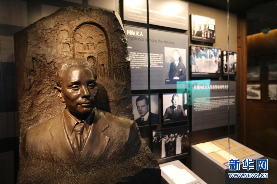 這是上海猶太難民紀念館內陳列的何鳳山塑像(12月8日攝)。何鳳山有“中國的辛德勒”之稱。1938年至1940年,何鳳山擔任中國駐奧地利維也納總領事期間,向數千猶太人簽發了“生命簽證”,使他們得以逃脫納粹魔爪。