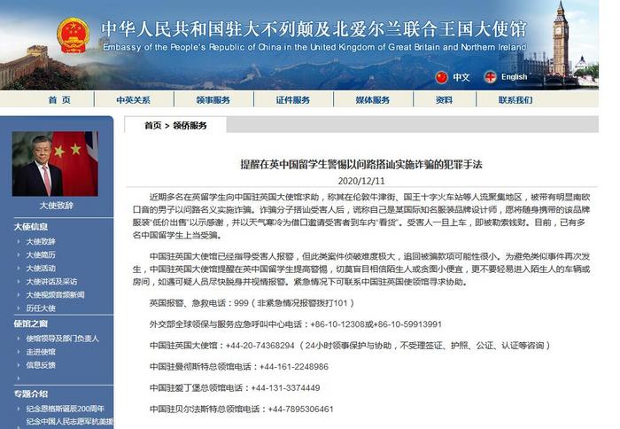 中國駐英國大使館已經指導受害人報警,但此類案件偵破難度極大,追回被騙款項可能性很小。為避免類似事件再次發生,中國駐英國大使館提醒在英中國留學生提高警惕,切莫盲目相信陌生人或貪圖小便宜,更不要輕易進入陌生人的車輛或房間,如遇可疑人員盡快脫身并視情報警。緊急情況下可聯系中國駐英國使領館尋求協助。