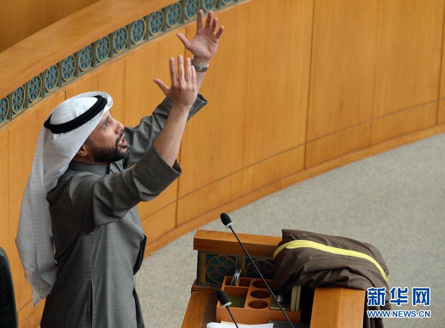 12月15日,在科威特首都科威特城的國民議會大廈,馬爾祖克·加尼姆在當選為新議長后歡呼。新華社發(阿薩德攝)