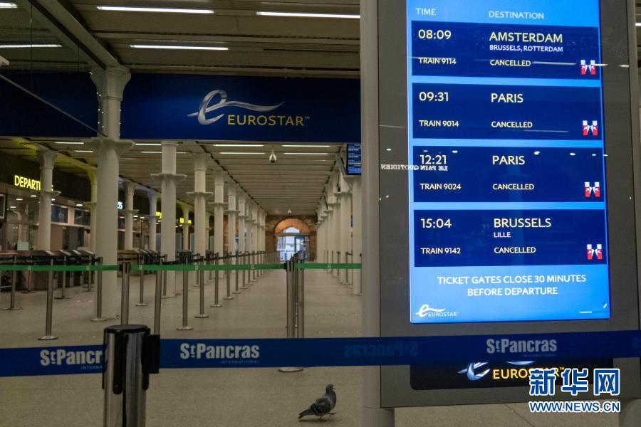12月21日,英國倫敦圣潘克拉斯火車站國際出發大廳內顯示,多趟“歐洲之星”列車被取消。新華社發(蒂姆·愛爾蘭攝)