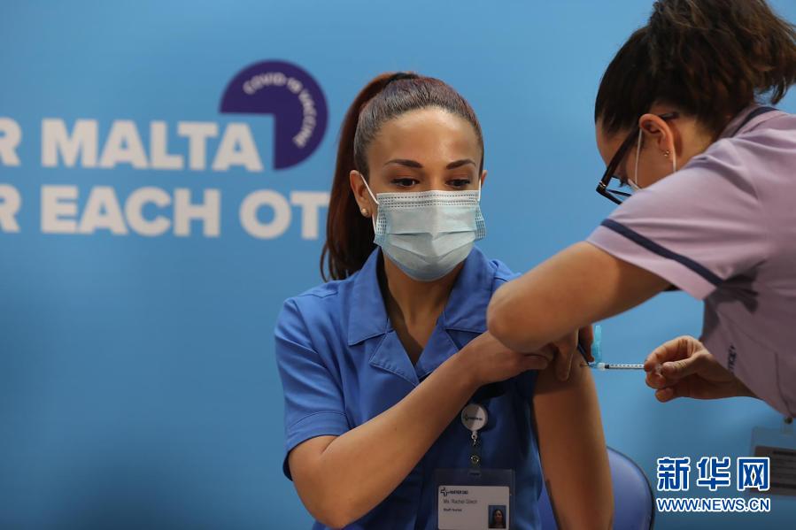 12月27日,在馬耳他瓦萊塔,國(guó)立圣母醫(yī)院護(hù)士蕾切爾·格雷奇接種新冠疫苗。