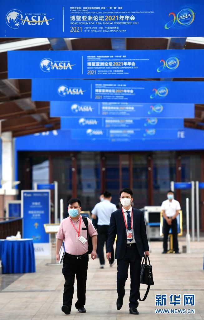4月18日,參會人員走過博鰲亞洲論壇國際會議中心主會場通道。